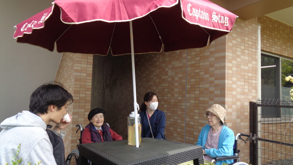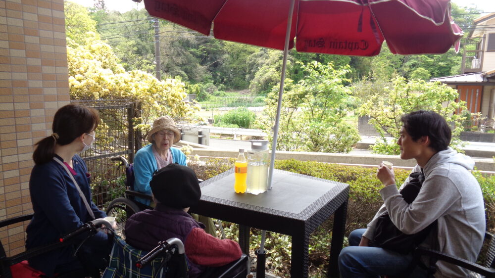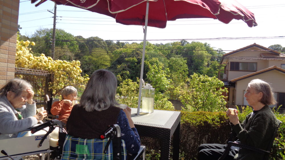 週末は、屋外へテラスを運んでお茶会を開催しました。
