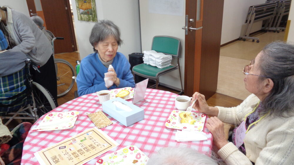 皆様大好きなケーキと飲み物が運ばれ、皆様笑顔で召し上がられています。