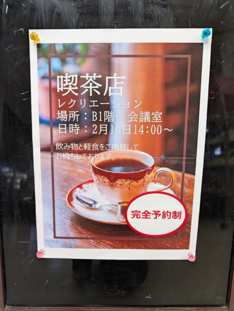 一日限定、施設内で喫茶店が開店いたしました。昔の喫茶店で過ごした時を思い出して頂きながら参加頂いてます。