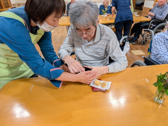 慣れない手つきでも楽しくにこやかに取り組まれています。
