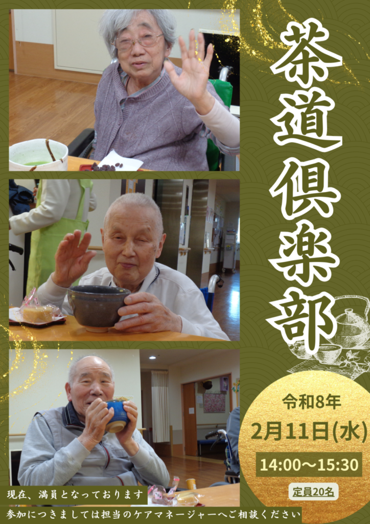 さて、けいあいの郷緑園では、月に1回茶道クラブを開催しております。